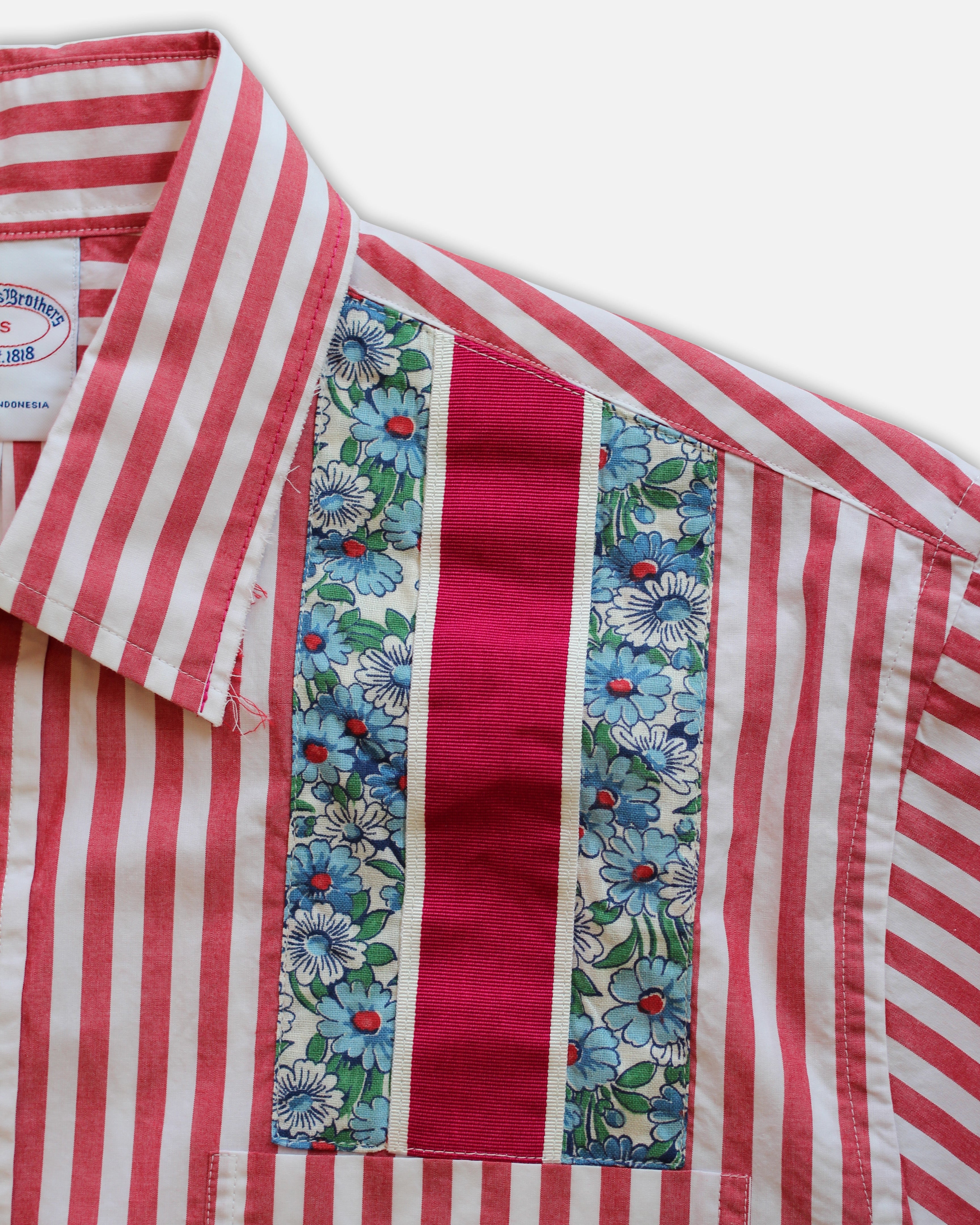 Hitchcock x Fred Hutch Red Striped with Blue Floral Ribbon Pocket Shirt